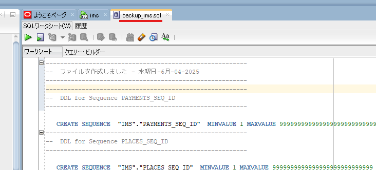 SQLワークシートとして開かれますので、SQL文をすべて実行します。