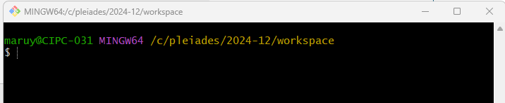 プロジェクトを配置したいworkspaceディレクトリをGit Bashで開く