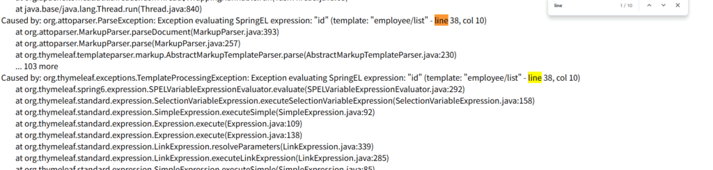 テンプレートのエラーの場合、ページ内検索(Ctrl+F)で”line”と入力すると、原因の記述がある行を確認できます。