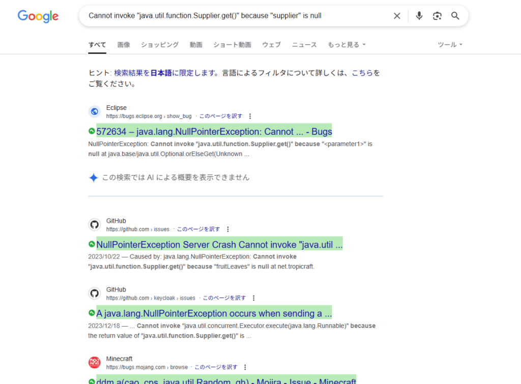 Java、Springでは英語圏の方が比較的記事が多いので、英語や英単語のみで検索するのがおすすめです。