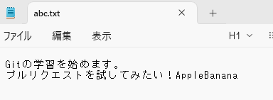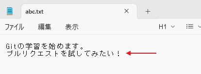 「abc.txt」の「プルリクエスト~」の行の後ろに