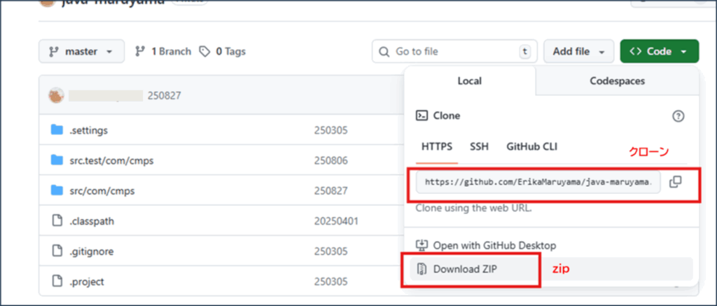 - GitHubで対象のリポジトリを開いたら右上の「Code▼」をクリック