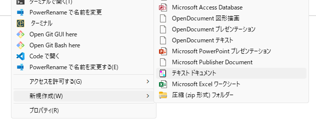 ・「gitPractice」フォルダ直下に下記の内容で「abc.txt」ファイルを作成します。(フォルダで右クリック>テキストドキュメント を選択)