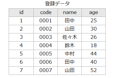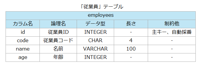 INSERT INTO employees (code, name,age) VALUES('0001', '田中', 25);