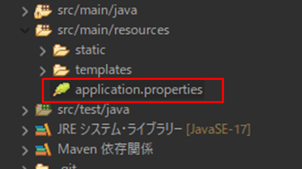 Spring Bootプロジェクトでは、application.propertiesファイルに記述します。