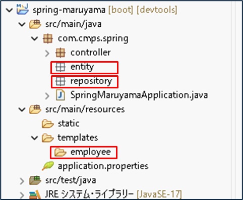 ・「src/main/resources/templates」フォルダ内に「employee」フォルダを作成