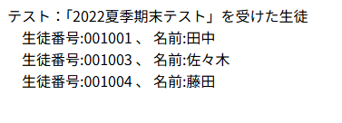 問1: 「2022夏季期末テスト」を受けた生徒の情報を取得してください。