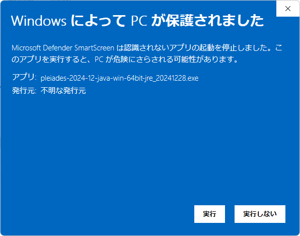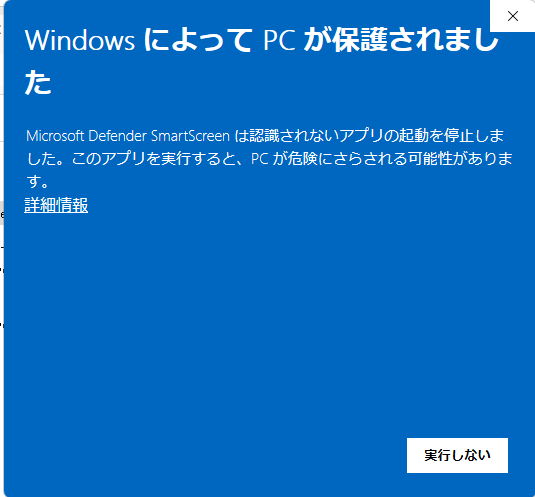 下記が出た場合は「詳細情報」リンクをクリック