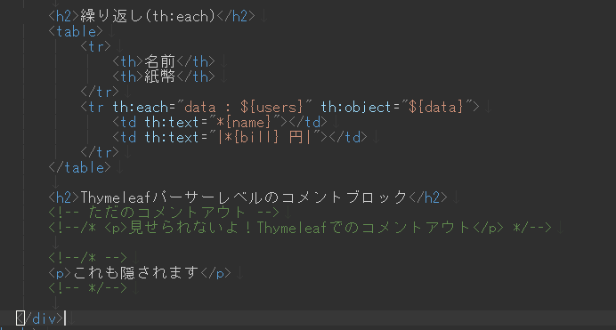 <h2>Thymeleafパーサーレベルのコメントブロック</h2>