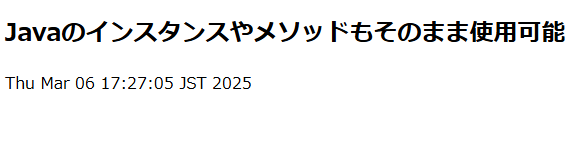 <h2> Javaのインスタンスやメソッドもそのまま使用可能</h2>